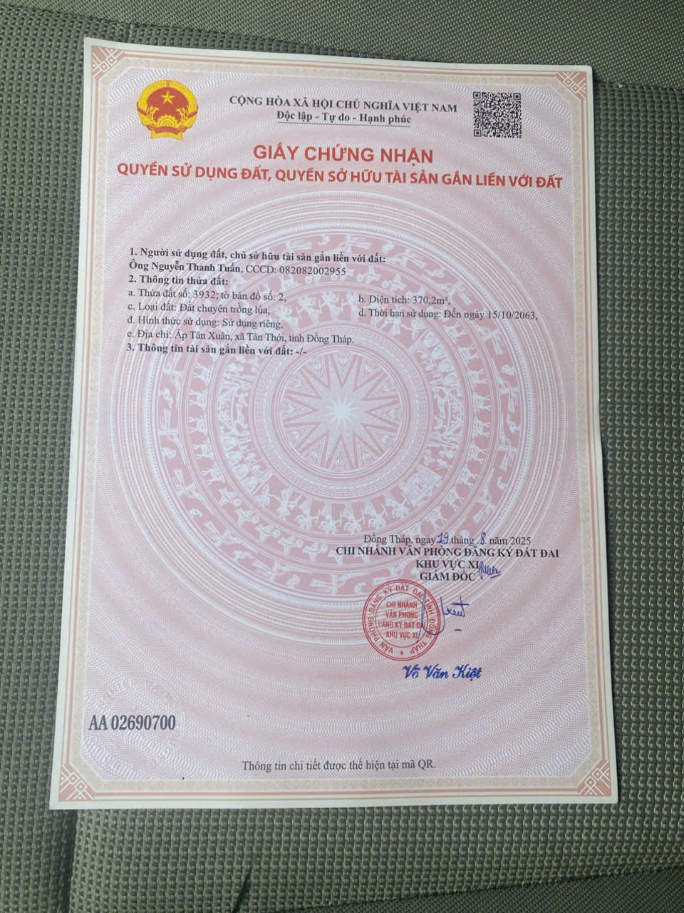 ►  BÁN ĐẤT XÃ TÂN THỚI – ĐỒNG THÁP DIỆN TÍCH LỚN – GIÁ ĐẦU TƯ